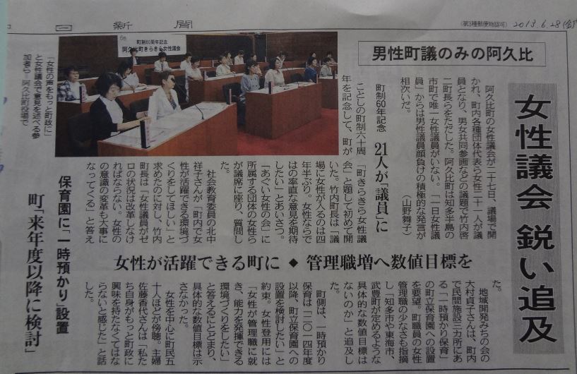 参加人数:一日女性議員として、みちの会から3名(内1名 議長)